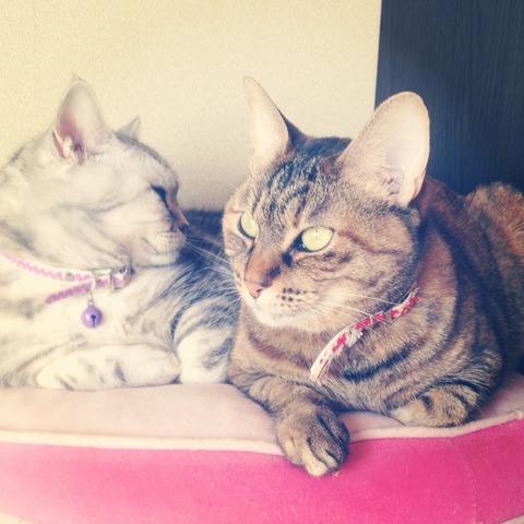 マイペースで表情力がとても豊か。隣に落ち着きない子猫がやってきて、「やだなあ、ぼく眠いんだけど」の図です。